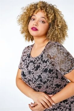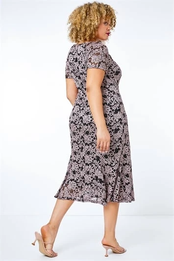 Step out in style with this curve fit and flare dress. Cut from a stretch, sequin lace fabric this is perfect for those special occasions. Itโs flattering fit and flare shape creates memorising movement making it ideal for dancing the night away. It boasts a round neckline and finishes at a demure midi length. Style with heels and you’re ready to wow!