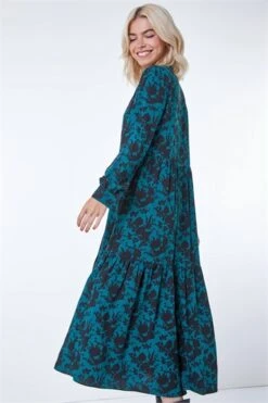 Nail the relaxed boho trend with this simple milkmaid style mini dress. Cut from a cool and comfortable stretch jersey fabric this dress features a unique square neckline and short puff sleeves. A shirred bodice ensures a comfortable fit throughout while the skirt falls to a modest midi length and is finished with a fun frill hem. Designed to pull on overhead, this dress is perfect paired with a denim jacket and sandals for effortless Summer style!
