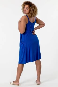 Get spotted in this classic polka dot print midi dress! Cut from a cool stretch jersey fabric this dress features a feminine v neckline and is designed in a sun ready sleeveless style, complete with comfortable shirred straps. Adorned in a playful polka dot print this dress has an elasticated waist for comfort and shape, while the skirt falls to a modest midi length in a fit and flare shape. Designed to pull on overhead, simply pair this dress with a lightweight jacket and sandals for effortless holiday style!