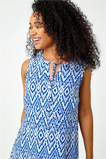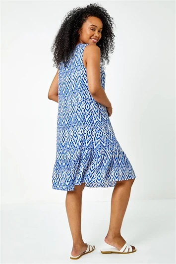 Make a statement this Summer with this vibrant Petite print! Cut from a cool jersey stretch fabric, this bold floral dress has a modest v-neckline, as well as a fit and flare short sleeved silhouette that finishes at the knee. Blending comfort and style, this easy to pull on dress has a comfortable shirred waistline to cinch you in. Pair this day dress with a lightweight jacket and sandals for casual holiday style.