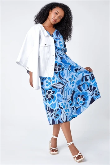 Start the new season in style by adding this gorgeous Petite print into your Summer wardrobe. Detailed with a unique square neckline, this strappy dress also has an elasticated shirred bodice for a flatteringly feminine fit. It has comfortable wide straps and a feminine frill at the hem to top off your look. Sitting at a stylish midi length, this floral print dress is an easy suitcase staple for those beach holidays. Pair with some wedges for a casual yet glamorous Summer look that will take you from day to night.
