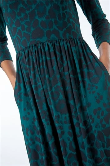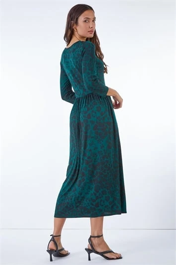 A must have for everyone’s Summer wardrobe, this stretch jersey midi dress is versatile and comfortable. Cut from a soft, stretch fabric this dress features a modest round neckline and short sleeves, perfect for the warmer weather. An elasticated waist creates flattering pleats which fall to its midi length hem. Adorned in a ditsy, floral print this piece is designed to pull on overhead, making it perfect for busy Summer days and last minute plans. Pair with fresh trainers or sandals and add a light weight denim jacket for the perfect laid back outfit!