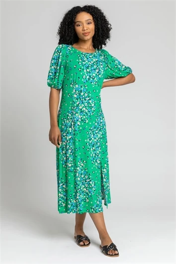 Get set for Summer with the addition of this pretty Petite printed number! Crafted from a soft viscose material, this style has an easy pull on shape and elasticated waistband for comfort. Subtle gathers and a tie at the waist creates a figure flattering silhouette that finishes at a maxi length. Its sleeveless body has a timeless v-neckline and feminine side split to complete the look. Made with holidays in mind, this ditsy floral dress is sure to be top of your packing list!