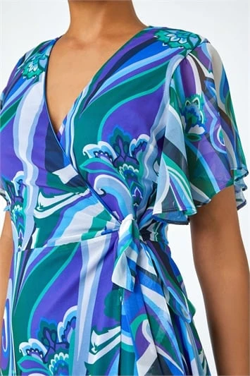 Be bold in print this Summer with our hanky hem midi dress. Adorned in a statement print with colourblocking and abstract spots, this breezy silhouette is crafted from a light woven chiffon with a silky slip lining. Ideal for a comfortable Spring Summer look, this style can be pulled on over the head with ease. It boasts thin cami straps with a feminine cross over detail at the back. Give your style a trendy edge with sandals for a holiday ensemble or dress it up for that beachside destination wedding.