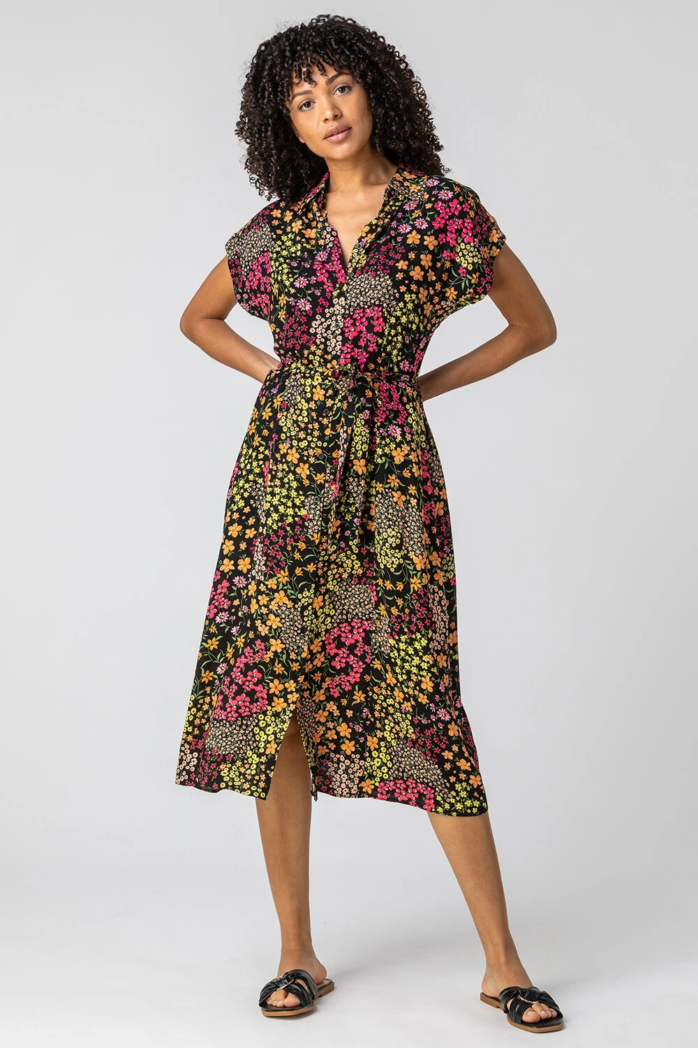 A tie-waist shirt dress will always be in style. We just can’t get over this floral print woven dress, cut to a timeless silhouette its collared neckline and colourful hues give it a feminine and sophisticated feeling. Made from a lightweight fabric with short sleeves, this style is perfect for summer and can be worn with a cropped denim jacket and sandals for the ultimate post-lockdown look.