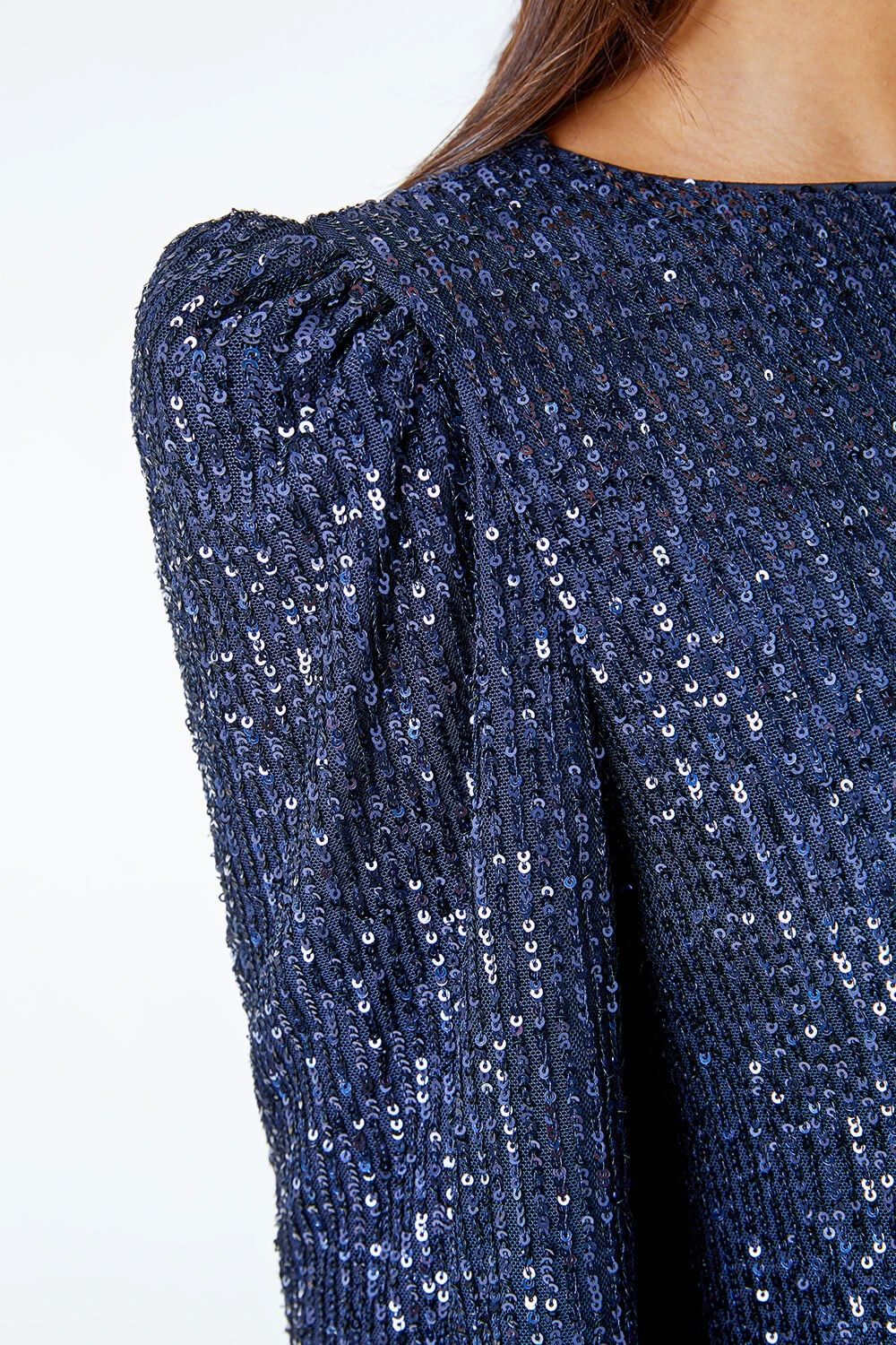 A timeless party dress, this simple all over silver sequin Dusk dress will see you through many festive occasions to come! The short length, round neckline, and long puff sleeves create an elegant silhouette. Easy to co-ordinate with, add a neutral heel and delicate jewellery to complement this gorgeous sequin style!