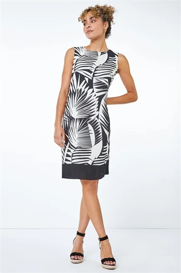 A classic summer cut, adorned with a flattering tribal inspired border print, makes this Roman Petite dress an easy go-to piece. This sleeveless style is designed with a round neckline that skims and flatters your body, finishing off at the knees with a keyhole and button fastening on the back. You’ll find yourself reaching for this dress time and time again. Made perfect for the summer months, this easily styled number is a sure wardrobe winner for any occasion!
