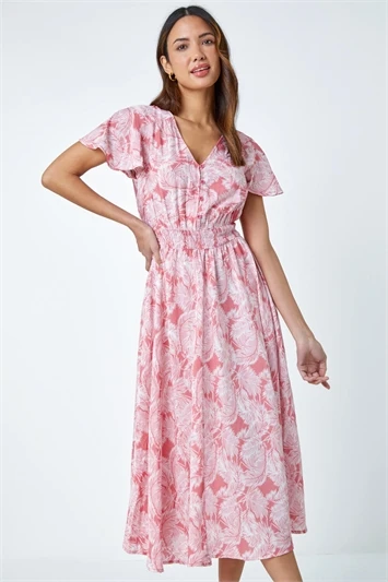 This sunny staple is a bohemian Summer dream! A pretty addition to the Petite range, this tiered silhouette is light and airy for the warmer weather. This tiered number features a contrast floral pattern, short frill sleeves, button detail and a stretchy elasticated waist. Wear this holiday style with wedge heels and a shrug for an evening abroad or choose strappy sandals and a denim jacket for a barbeque with friends!