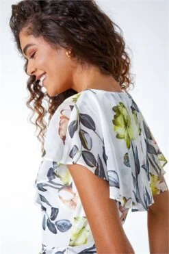 Soft floral prints combine with delicate chiffon fabric to create this garden party perfect wrap dress. Cut from a soft chiffon fabric this piece features a feminine v neckline, created by its flattering wrap style. Short frill sleeves and a self-tie fabric belt add extra luxurious detail. An asymmetric, frill hem adds extra movement falling softly to a knee length in a complimentary fit and flare style. Add heels and a shrug for a perfect Summer Wedding look!